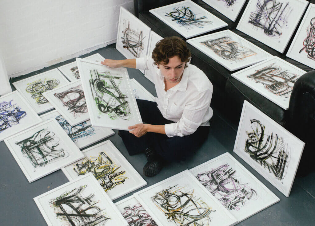 In all of its abstraction it at first does not make sense. But like a riddle it unfolds and latches onto you. Alive and kinetic, these worlds jump off the page. Look at them up close and then from afar. Squint your eyes to find a new perspective.